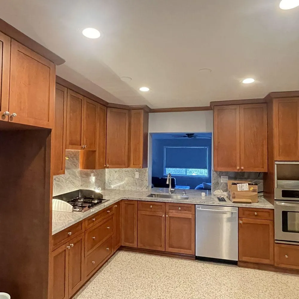 We begin by carefully cleaning, sanding, and prepping your cabinets for a flawless finish. Then, we apply professional-grade paints or stains in the color and style you choose. Whether you want a sleek, modern white finish, a bold pop of color, or a rich wood-tone refinishing, we have the expertise to make it happen.